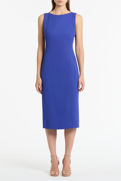 With an elegant boater neckline and a midi-length hem, this signature sheath dress has an understated sophistication. Dart details create a defined waistline, while the minimal tailoring expertly sculps the body. Style simply with a heeled sandal and tote for effortless sophistication.