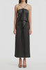 BLACK LUSTRE SATIN FRILL FRONT DRESS