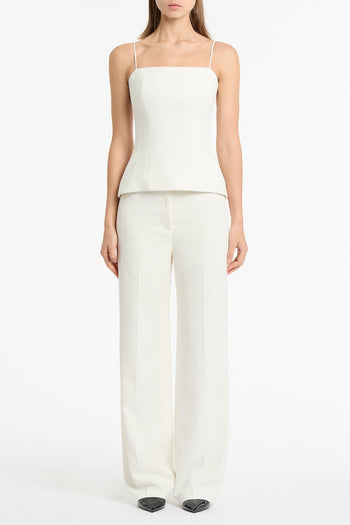 IVORY STARLIGHT TWILL TUCK FRONT PANT