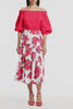 Crafted in red floral sateen, this midi-length A-line skirt features soft pleat detailing and a defined waistband, creating a romantic yet refined silhouette for daytime or evening wear.