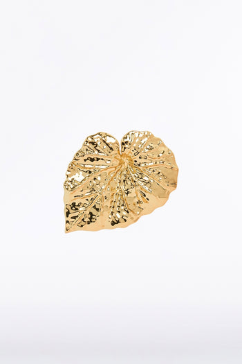 The Gold Leaf Brooch is a sculptural accessory designed with intricate texture and a high-shine finish. Featuring a secure pin closure at the back, it can be styled on suiting, coats, or eveningwear for a refined, nature-inspired accent.