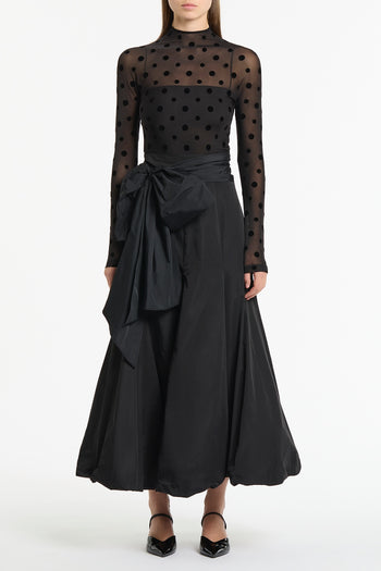 A sheer long sleeve top crafted in mesh with a refined spot motif, designed with a close-fitting silhouette. Finished with a coordinating slip top for coverage, it offers elegant layering with modern evening appeal.