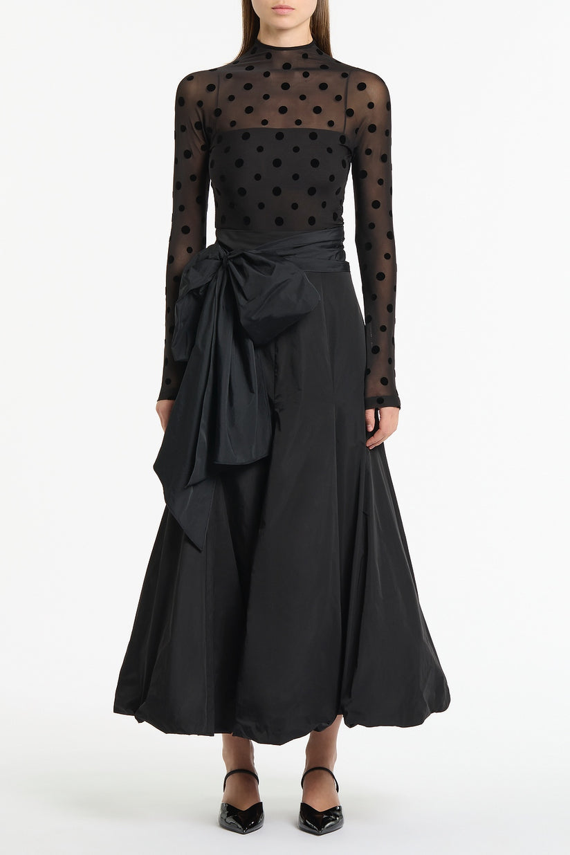 BLACK MESH SPOT LONG SLEEVE TOP