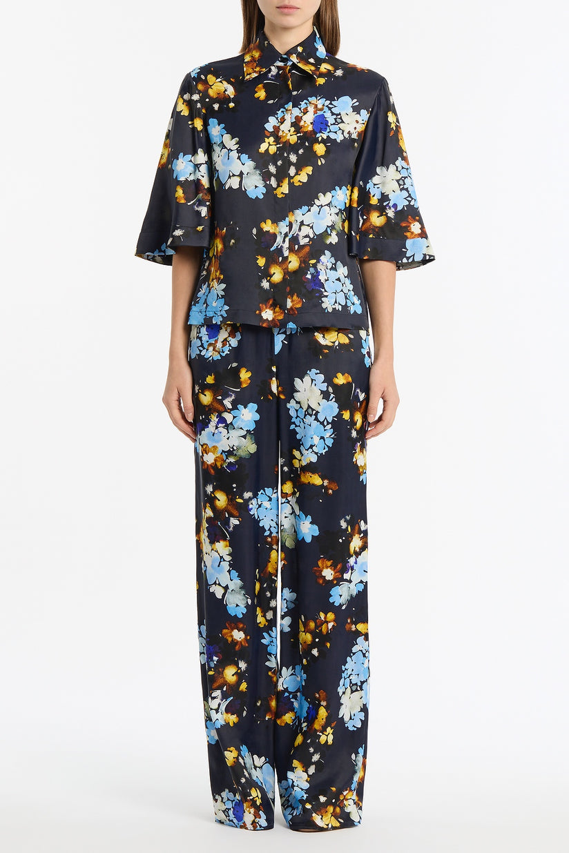 MIDNIGHT BOTANICA VISCOSE TWILL FLUTED SLEEVE SHIRT