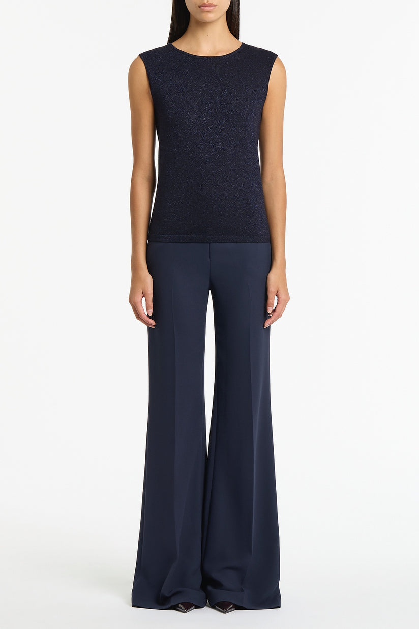A classic from the CZ archive, these pants in french navy crepe are foundational to a chic wardrobe. The tailored trouser has a low waist with front invisible zipper and semi wide-leg for a flattering silhouette.