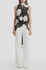 Featuring a high neckline and two-layer design, this polka-dot top is finished with versatile ties that can be styled as a bow or knot, creating a refined and modern statement piece for tailored or skirted ensembles.