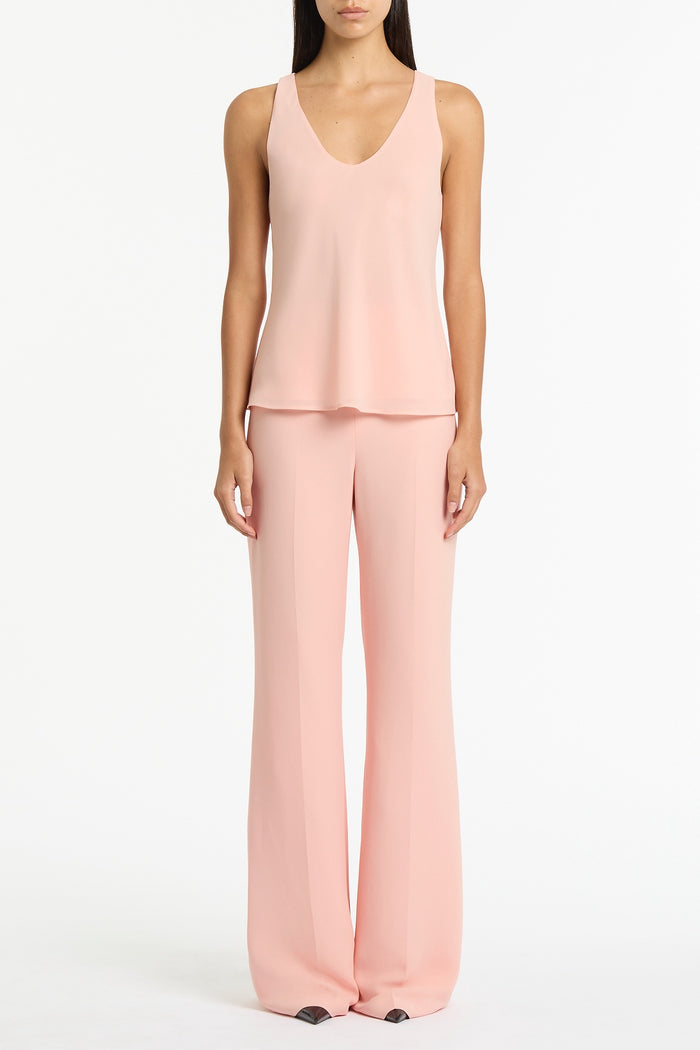 A classic georgette cami featuring a refined scoop neckline and wide straps designed to discreetly conceal undergarments. A versatile layering essential, ideal worn under blazers or styled on its own.